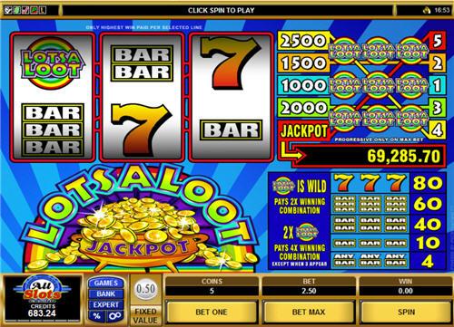 Nonostante la larga diffusione ottenuta da questo software, nessun casinò italiano ha deciso di includere nella propria offerta la slot machine Lotsaloot, che viene comunque egregiamente sostituita da tante valide alternative in grado di non farci rimpiangere il prodotto disponibile sulle piattaforme internazionali. La scelta di slot machine nei casino italiani Microgaming è davvero ampia e dubitiamo che farete fatica a trovarne almeno una in grado di soddisfarvi. Ci teniamo a sottolineare inoltre che tra le tante proposte, non mancano le slot machine dotate di ricchi jackpot progressivi, che saranno in grado di permettervi di incassare ricchi premi a fronte di un investimento davvero limitato.